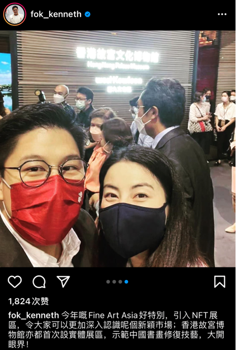 10月10日,霍启刚在社交平台晒出和爱妻郭晶晶一起看展的照片。照片中,两人穿着低调,郭晶晶白色衬衣配黑长裙温婉知性,与同色系着装的老公亲密合影,心情看起来十分不错。